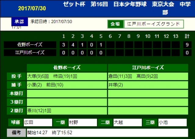前日から降り続く雨の為、開催が危ぶまれましたが江戸川ボーイズ様、関係者の皆様のご尽力により無事、試合が出来た事に感謝致します。ありがとうございました。