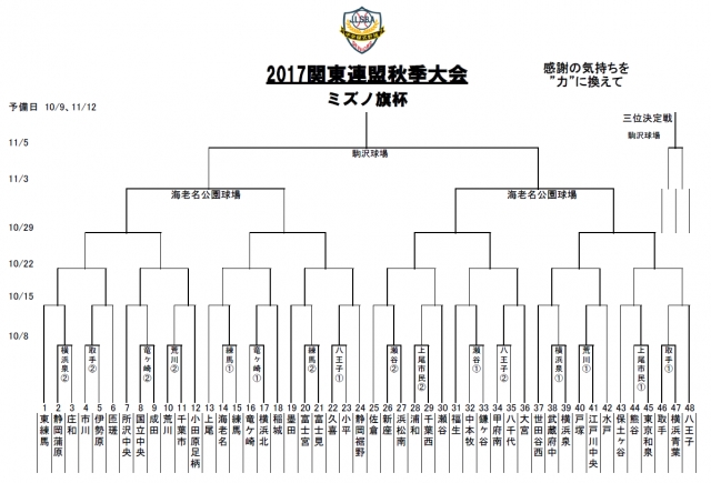 > 2017年ミズノ旗杯 リトルシニア関東連盟秋季大会 組み合わせ決定