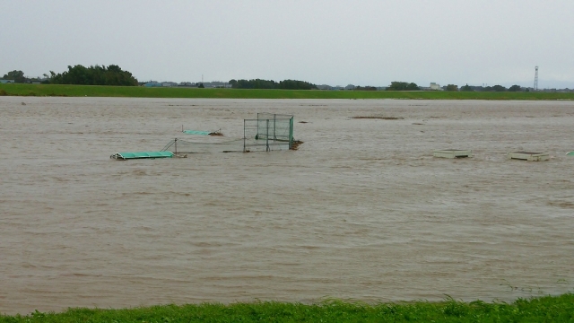 台風21号による河川増水によりグランドが冠水。2015年9月10日に水没して以来の再水没。