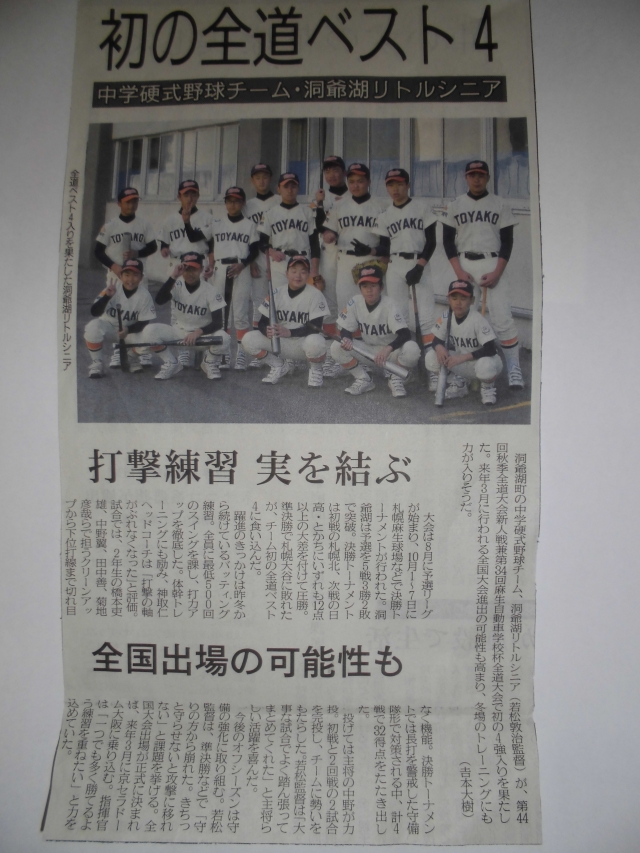 10月19日、室蘭民報の朝刊に初の全道大会ベスト4に関する記事が掲載されました!