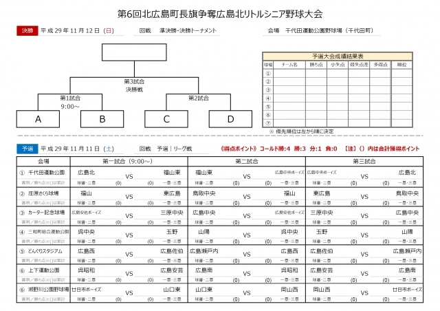 第6回北広島町旗争奪広島北リトルシニア野球大会組合せ