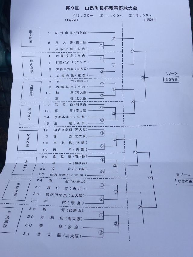 11月25日(土)に日高高校グランドにて第9回由良町長杯親善野球大会に参加しました。