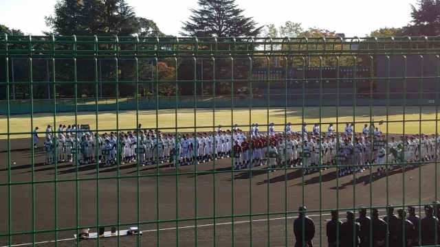 快晴の所沢市航空記念公園野球場で開会式が行われ、「
