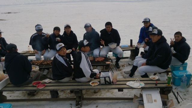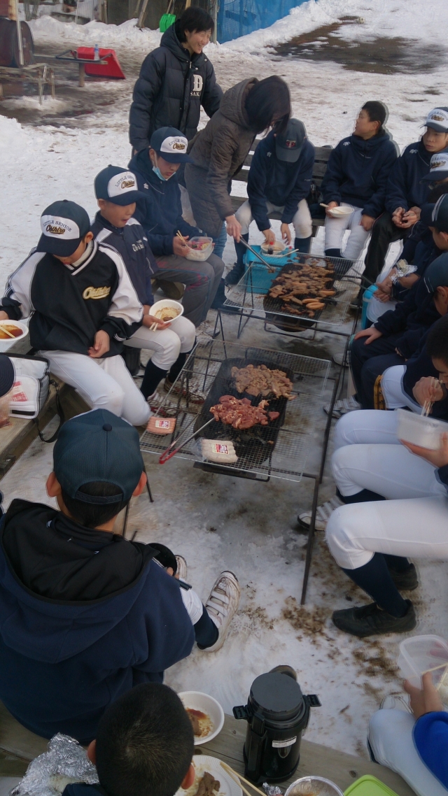 風もなく穏やかなクリスマス。今日は冬の焼肉です!シニアOBの高校生の訪問もあり賑わいました。