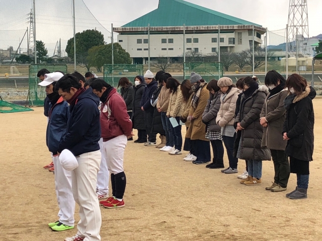 シニアGに各クラスの選手・指導者・保護者が集まり、黙祷を捧げました。