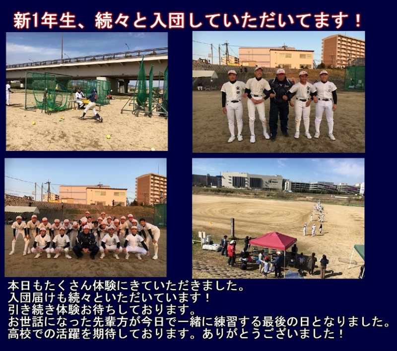 今日もたくさんの選手が体験会にお越し頂きありがとうございました!選手皆さんが監督と楽しそうに話している姿を見て微笑ましく思いました。たくさんの野球大好き選手の皆さんと4月から一緒に過ごせたら最高です