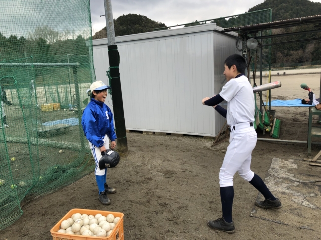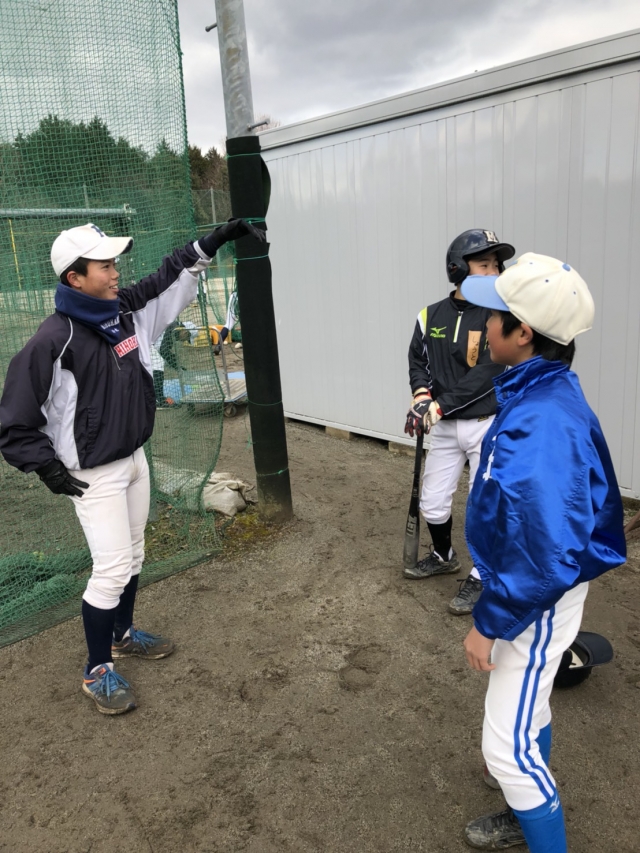 先輩たちともすっかり打ち解けた様子で、今日は副キャプテンが練習の合間にバッテングを教えてあげていました♪