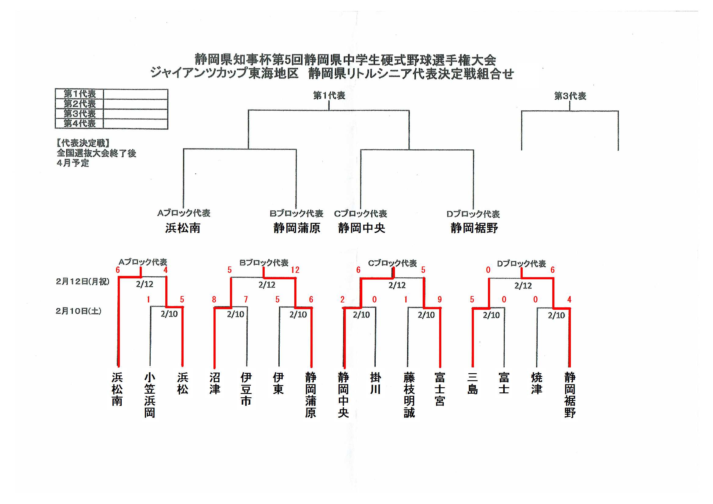 静岡県大会に出場でき、第4位チームはボーイズ・ヤングチームとの