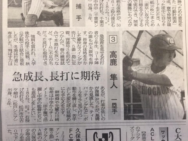 2018年3月23日開幕の「第90回選抜高校野球」に 中央学院高校が出場しますが、松戸リトルシニア卒団生が新聞にとりあげられました!