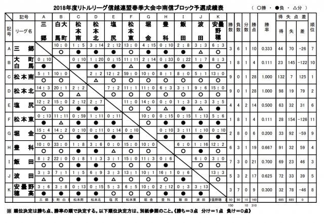 4月8日に飯田で開幕した全11チームによる「2018年度信越連盟春季中南信ブロック予選」が5月4日大町市で全ての日程が終了しました。