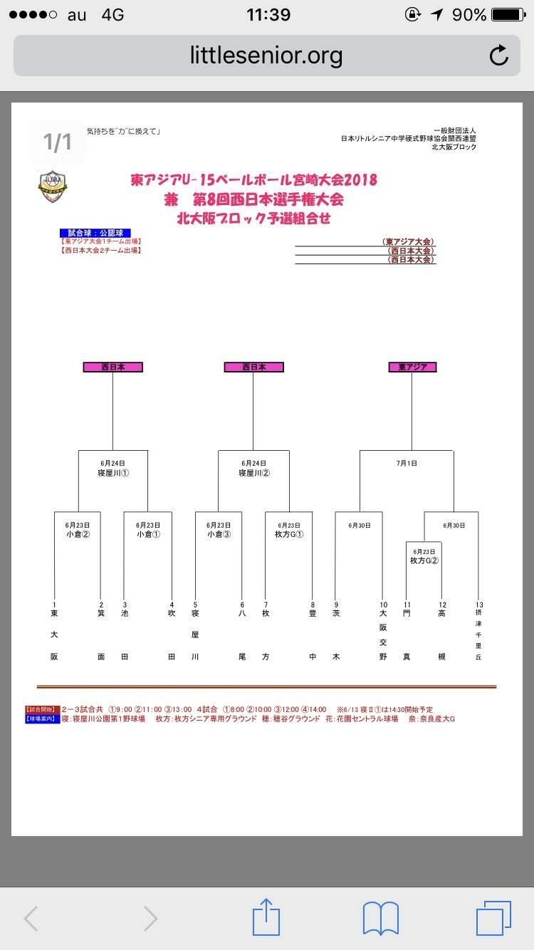 東アジアU-15ベースボール宮崎大会2018 北大阪ブロック予選