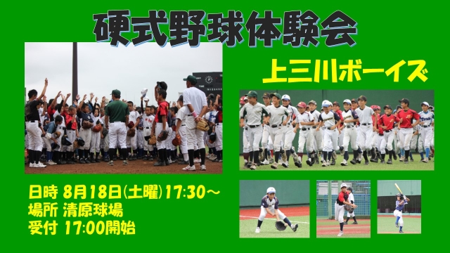小学6年生を対象に硬式野球体験会を行います。