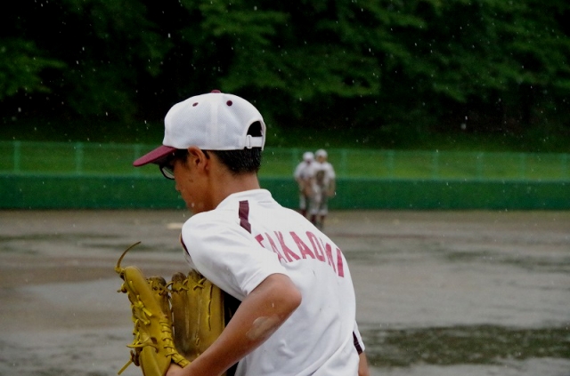気合を入れて吉田球場に集まるも外は雨・・・・・