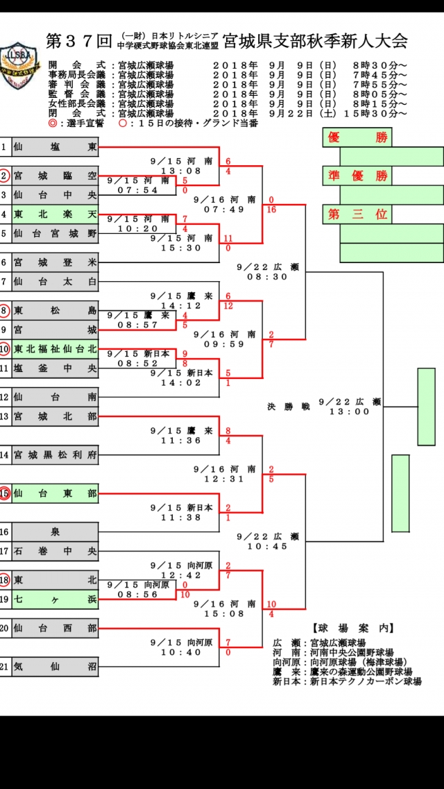9月22日に広瀬球場にて仙台東部シニアさんとの準決勝です