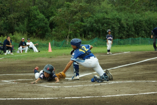 ゆうたろうのタッチを避ける見事なヘッスラで同点のホームイン!!