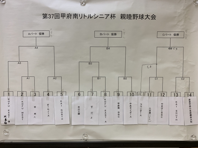 本日、2018年10月6日(土)に開催を予定している『第37回甲府南リトルシニア杯 親睦野球大会』の抽選会が行われました。