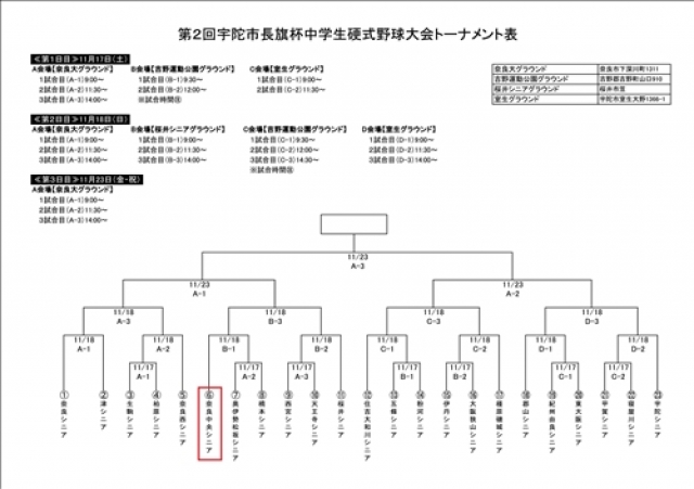 11/17(土)より開幕の第2回宇陀市長旗杯のトーナメント表です。