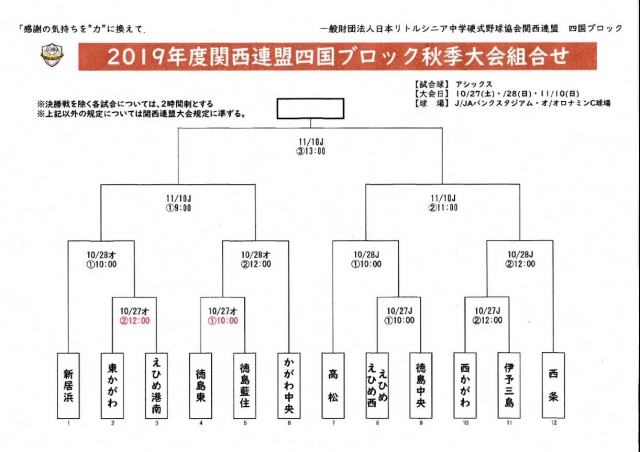 2019年度関西連盟四国ブロック秋季大会組合せ