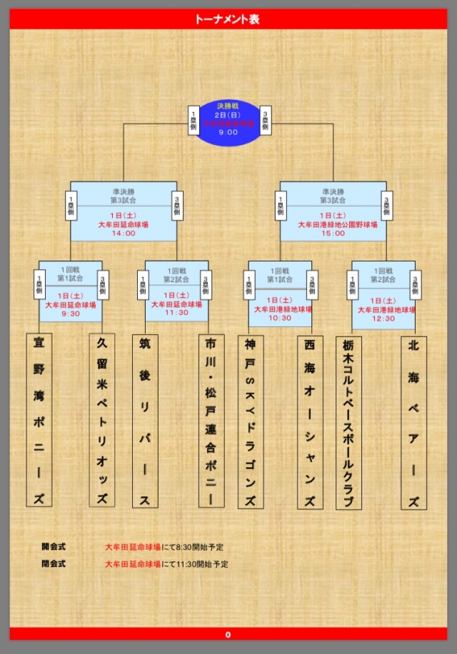 中学野球選手権大会のトーナメント表が