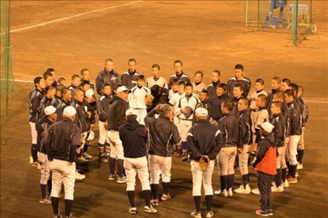 11/3、本年度、第2回目のナイター体験会が、ならでんスタジアムで行われました。この日は奈良県下の多くの学童チームが最後の大会ということで、体調・怪我などを考慮し、チョット少なめの参加で、5チームから十数名の参加です。