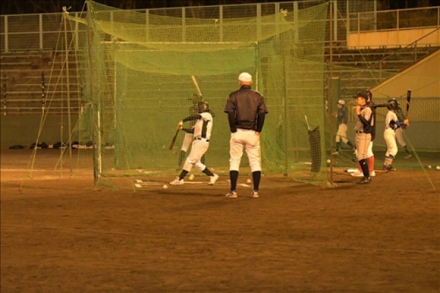 「なぬなぬ~!?」 おじさん達は1枚多く着込んでいるのに、半袖アンダーシャツの小学生が・・・!?「寒むないんか~?」…「大丈夫です!(^^)!」の元気な一言から、今回のナイター体験会は始まりました…