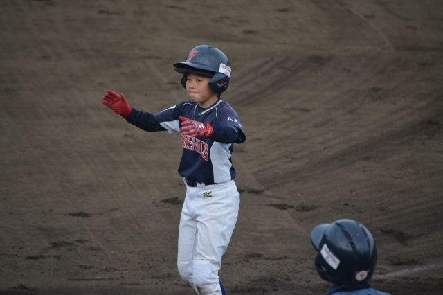 2塁ランナーの「ゆうたろう」も「うきょう」の走塁を確認し、しっかり3塁を陥れる機動力を生かす試合展開。