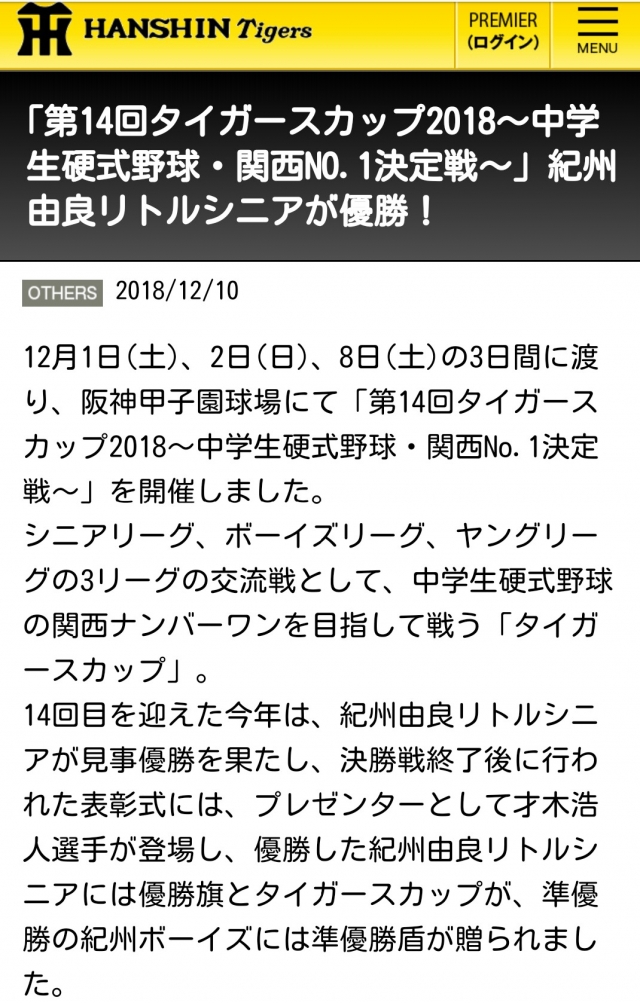 > 中学野球関西王者決定戦