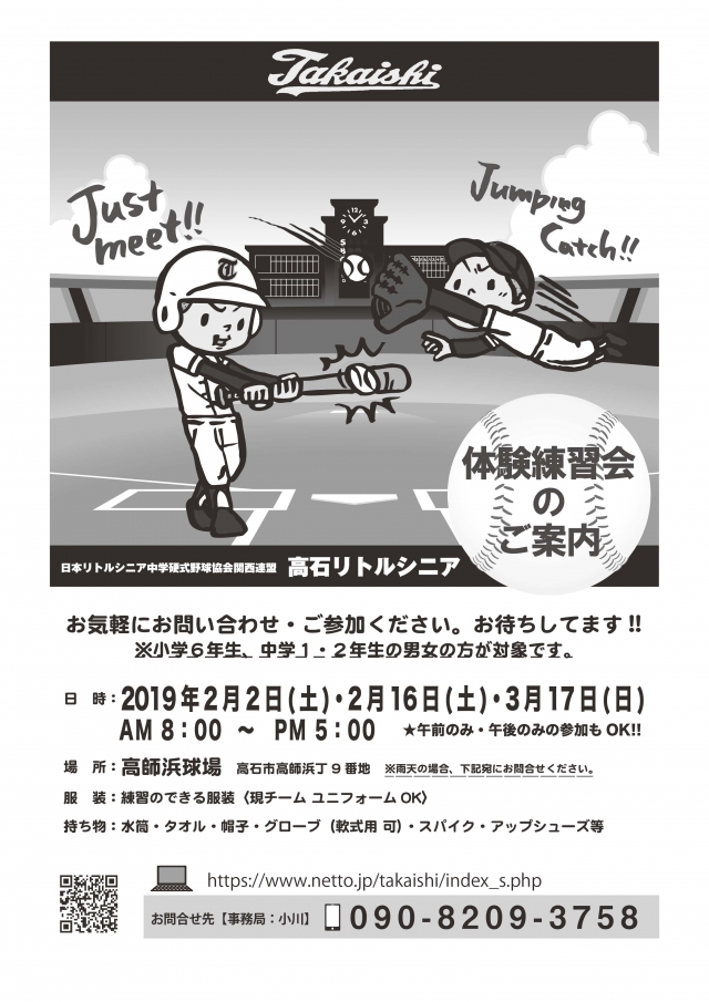 持ち物:水筒・タオル・帽子・グローブ(軟式用 可)・スパイク・アップシューズ等