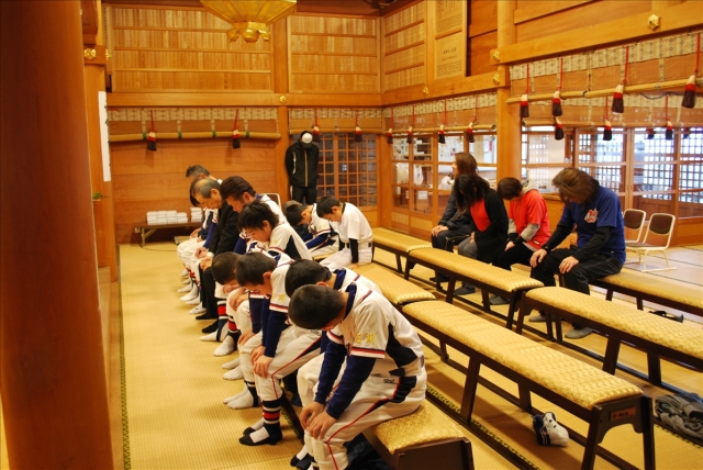 練習前に今年1年のチームの安全と必勝を