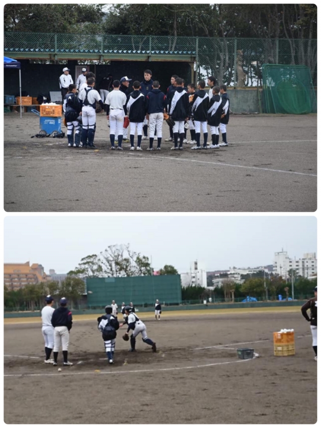 小雨の降る中、練習を開始しました。