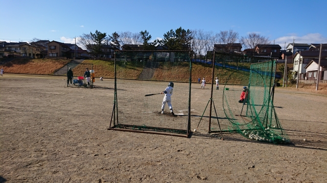 この時期は、体育館で練習なので、バッティング練習ができません。