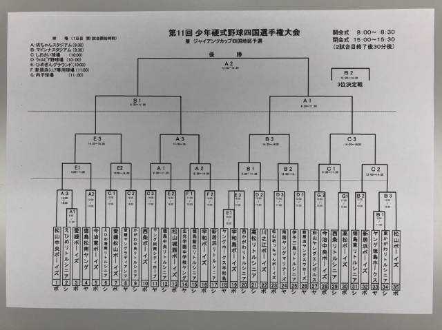 第11回 少年硬式野球四国選手権大会の組合せ
