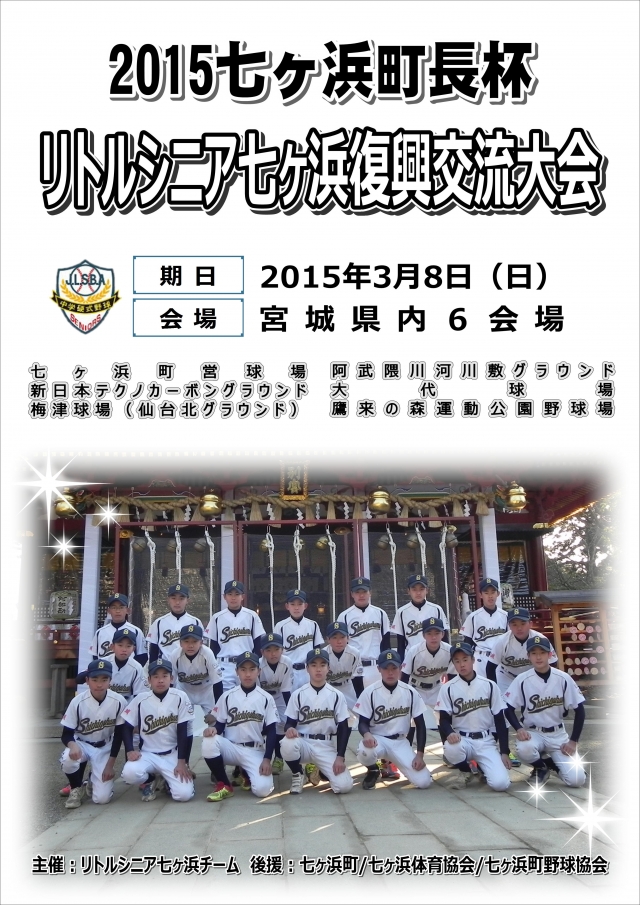 今年も七ヶ浜町長杯リトルシニア七ヶ浜復興交流大会をが3月8日(日)に開催致します。