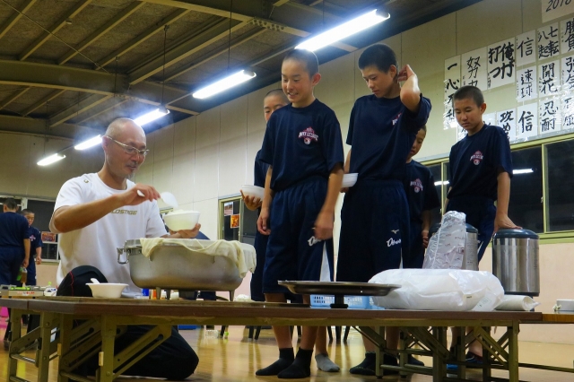 興味があったので、奥田代表、残間マネージャーにインタビューしました。すると、創立当初から、あった訳ではなく、最初は湯津上にあった個人宅の農作業場を間借りしていたそうです。練習場にする為に、1期生の親は総出で土を入れたり、ネットを手作りで編んだりしたとのこと。使い初めの際、手作りネットがバッテングの球を無事に受け止めると、大きな歓声が上がった。全てが手作りの出発で、この歓声はいまでも鮮明に記憶しているとのこと。