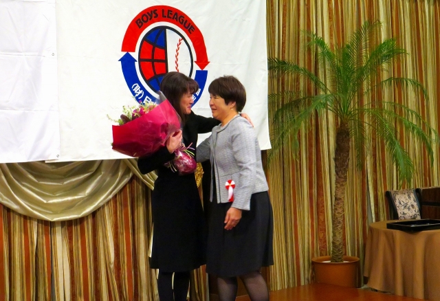 送る会になると、一転晴れやかなものになりました。お祝いのあいさつ、乾杯の後、記念品や花束贈呈では、森島会長と臼井会長、山口さんが、ならびに小藤セレ部長と菊池さんが思わず抱き合う場面がありました。これまでの充実した3年間を作ってくれた感謝の気持ちが現れたシーンでした。