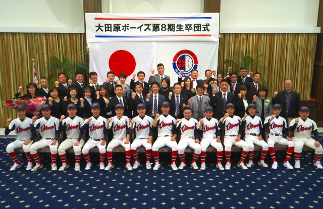 最後に小川監督より、贈る言葉を頂きました。「8期生は、裏方に回る選手が多かった。中学生に辛く悔しい思いをさせていいものかと私も悩んだ。それでも家庭でのサポートもあり、脱落することなく3年間続けてくれた。素直でいい選手に囲まれ、監督冥利に尽きます。この悔しい想いを忘れないで、高校でも野球を続けてほしい。そして辛いこと、嬉しいことがあったら、大田原ボーイズに帰ってきてほしい。帰る場所があり、一生の付き合いをしていくことが監督の夢だから。また、『負けたことがある』と言える大人になってほしい。これは勝負しているからこそ言える言葉。これからも勝負をする人生を歩んでほしい。卒団は、終わりではなく、新たな野球人生のスタートだ。」