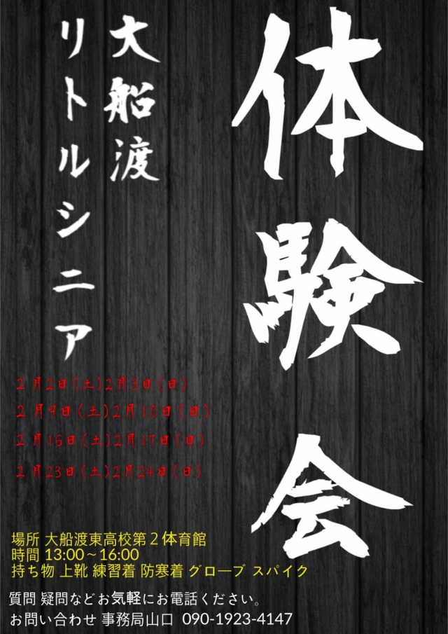 ★練習体験会(2月)のお知らせ★