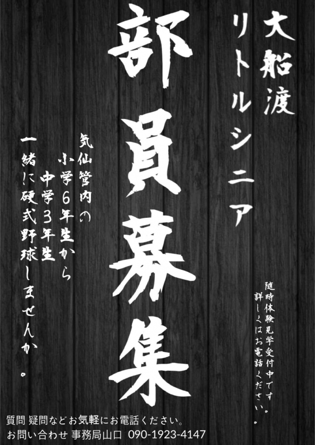 大船渡リトルシニアでは、2月も毎週土日に練習体験会を開催します‼️