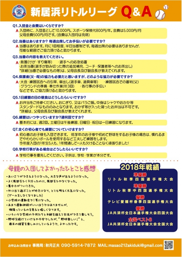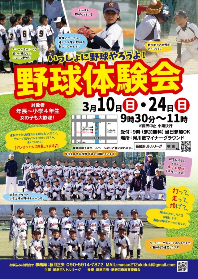 いずれも場所は新居浜リトルマイナーグランドで、受付は9時からとなっています。