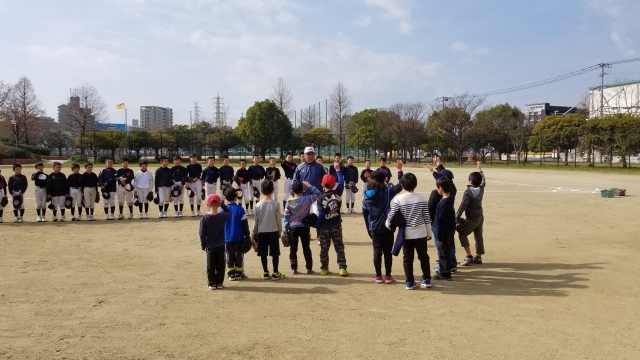 ランニング、準備運動、キャッチボール、ノック、マシンを使ったバッティングと普段の練習メニューを体験してもらいました。