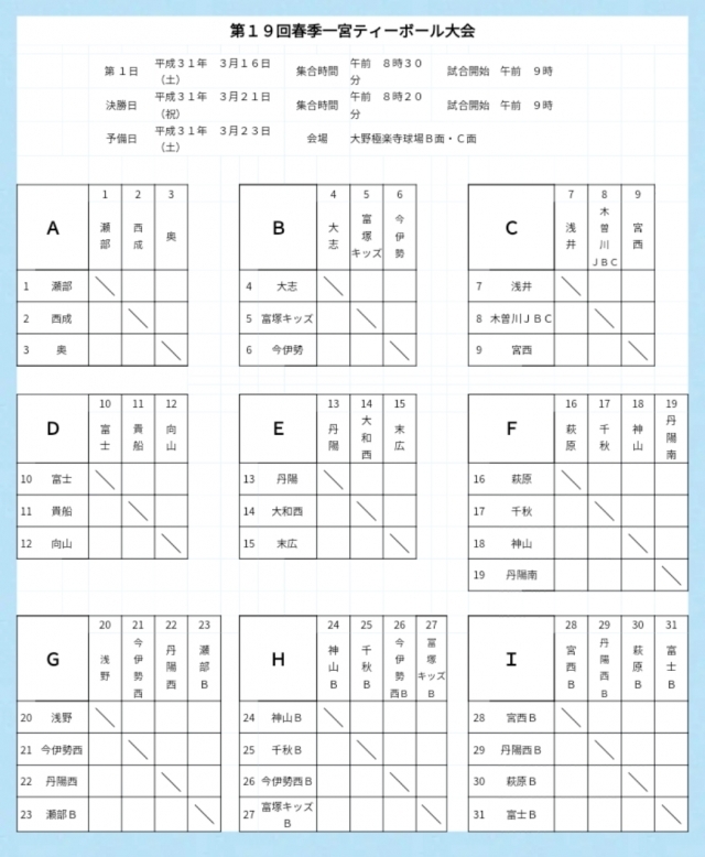 > 春季一宮ティーボール大会 予選リーグ