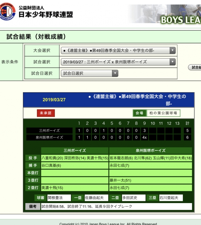> 第49回日本少年野球春季全国大会 2回戦