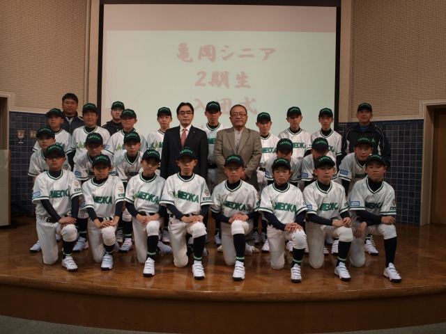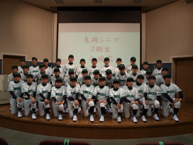式の中では会長の中村正孝様から丁寧なごあいさつをいただき、ゼネラルマネージャーの坂根京都学園大硬式野球部監督からは野球道についてお話がありました。新入団生にとっては、期待と不安を抱えながらの入団式になったことと思いますが、同時に新しい野球生活のスタートとなる良い思い出にもなったのではないかと思います。