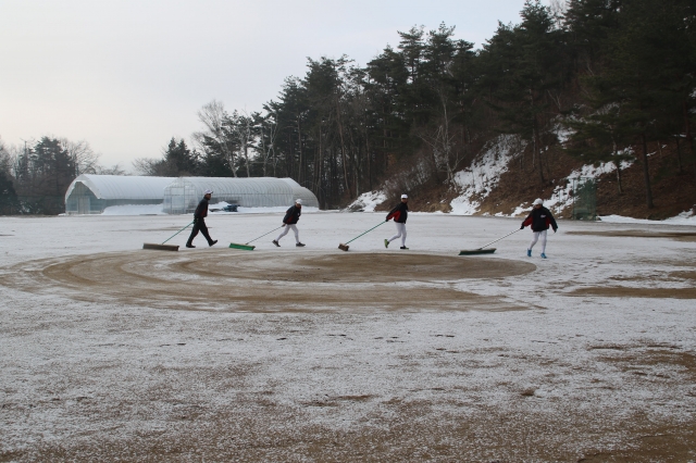 3月16日、寒い中グランド開きをいたしました。