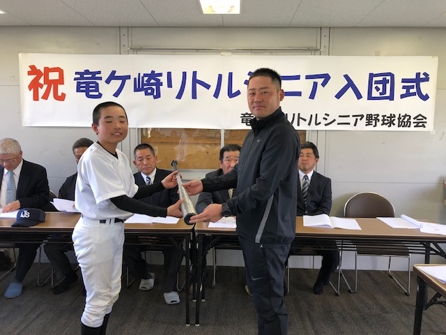 入団式に合わせて竜ケ崎リトルシニアOB会古谷会長より