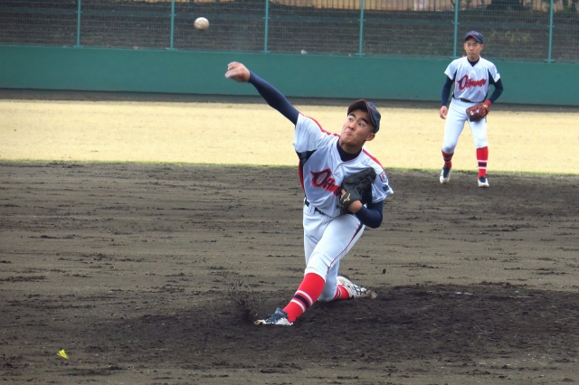 投手戦を演じたのは、宇都宮中央ボーイズの芹沢選手と小田部夏行(カイ)選手。名前の通りの、5回を無得点の快投でした。特に5回は三者連続三振と圧巻でした。その力投の写真を載せておきます。