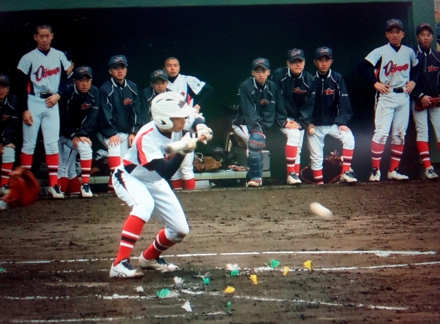 虎の子の1点は、2回裏、4番俵藤選手が打ったフライが、セカンドとライトとも捕れず、転がる間に2塁まで行く好走塁。5番小田部選手の進塁打(ファーストゴロ)で3塁に。これを、7番江部選手がスクイズを見事に決めました。サイドスローからの直球、変化球とも切れ味鋭い芹沢投手からの決勝となる打点でした。