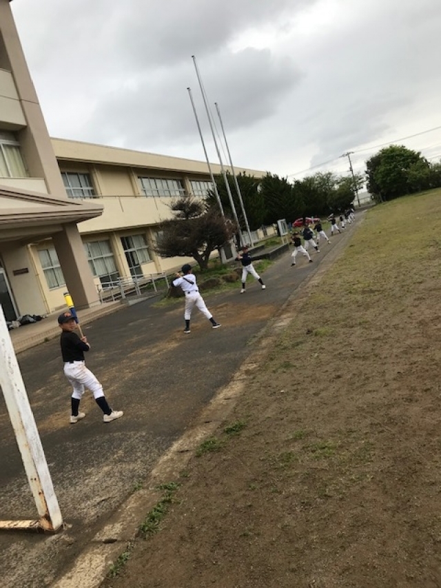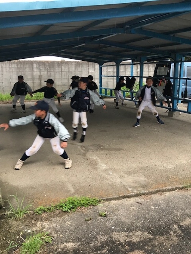 本日は雨の影響で、少し早く道具を片付けて、大学まで野球をしていたコーチの指導の元、素振りを300回ほどしました❗️体重移動がポイントですね👍