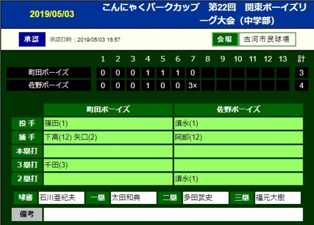 【第22回 関東ボーイズリーグ大会 速報】