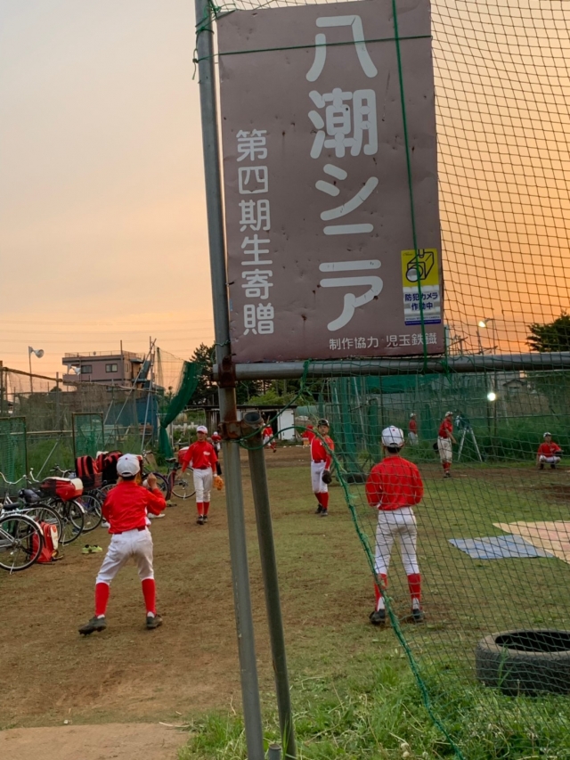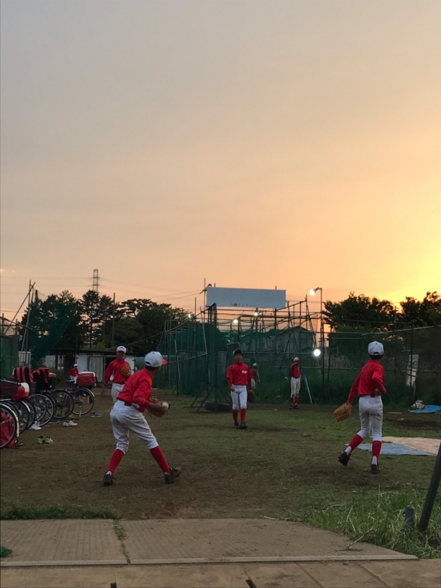 夕日に照らされるシニアグランドにて